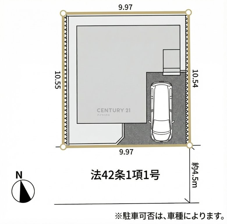 ※西側隣地土地に対し本地の一部が越境しており将来再構築時に越境解消の覚書有り