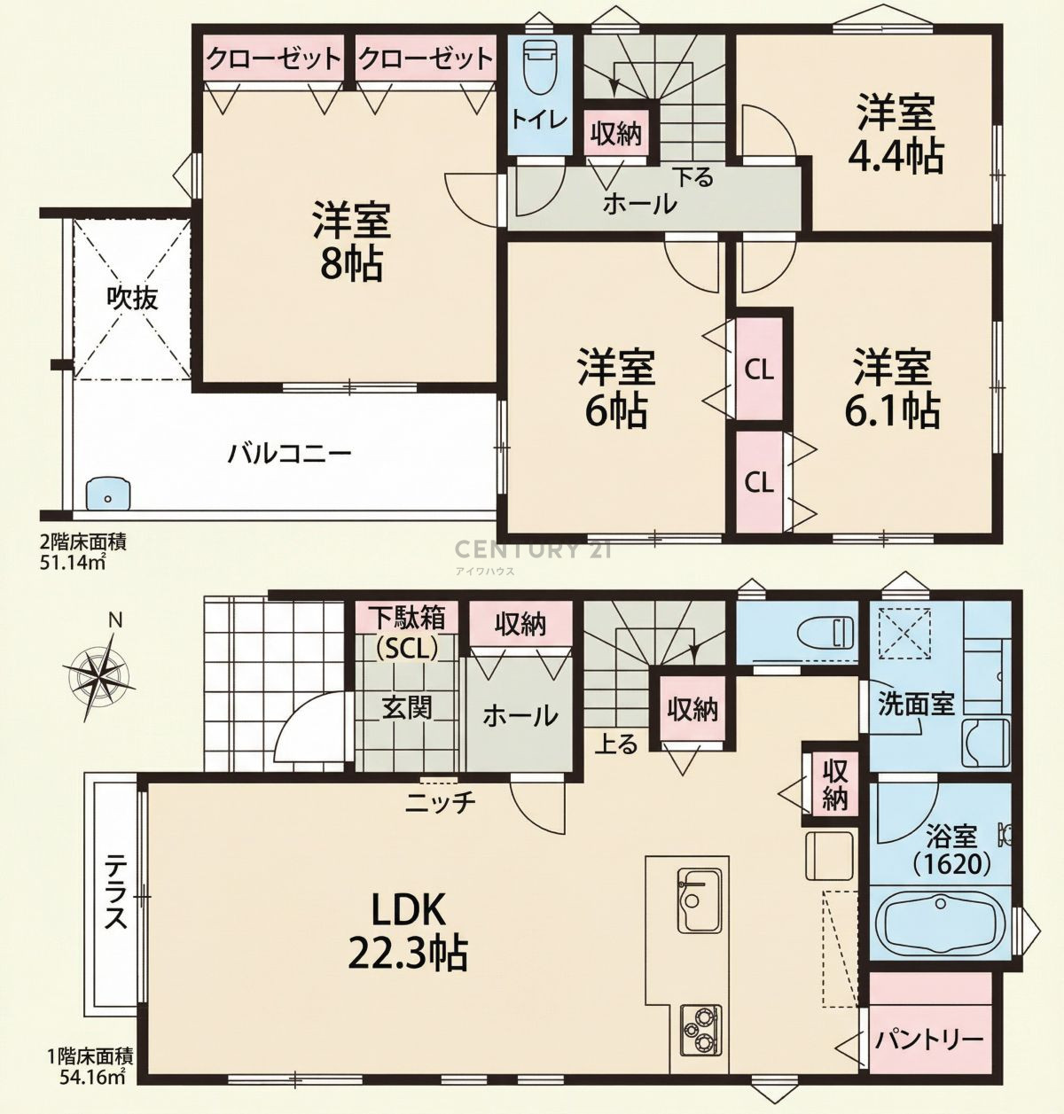 2階に配置されたLDKは、22.3帖もの広さを確保。プライバシーを守りながら、陽当たりと開放感を享受できる設計です。