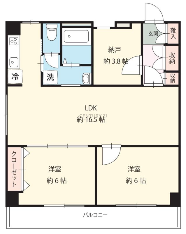 ◎67.86㎡の2SLDK、南西向き角部屋 納戸付きで収納力も高く、ゆとりある空間設計。角部屋のため採光・通風に優れています。